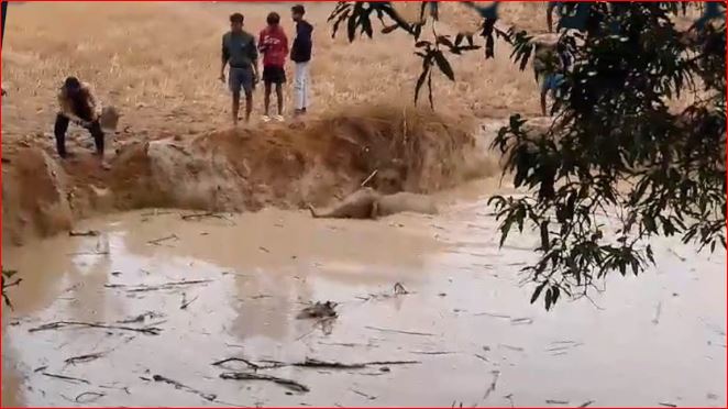 मंडराते हाथियों के झुंड की परवाह किए बगैर ग्रामीणों ने खेत में पानी से भरे गड्ढे में फंसे हाथी के शावक को बचाकर मानवता की मिसाल पेश की हैं। दरअसल रायगढ़ जिले के लैलूंगा रेंज मे विचरण कर रहे 41 हाथियों का दल बीती रात रायगढ़ वन मंडल के दानोट पहुंच गया था। हाथियों के दल का एक शावक नहाते समय चिल्कागुडा में एक खेत में बने गड्ढे में फंस गया। शावक बार-बार गड्ढे से बाहर निकलने की कोशिश कर रहा था, लेकिन पार की ऊंचाई ज्यादा होने की वजह से वह निकल नहीं पा रहा था। इस बात की जानकारी जैसे ही सुबह जैसे ही ग्रामीणों को हुई उन्होंने तत्काल बिना वन विभाग की मदद से मोर्चा संभाल लिया. खड्डे के आस-पास खुदाई शुरू कर घंटों बाद हाथी शावक को बाहर निकलने में महत्वपूर्ण भागीदारी निभाई।