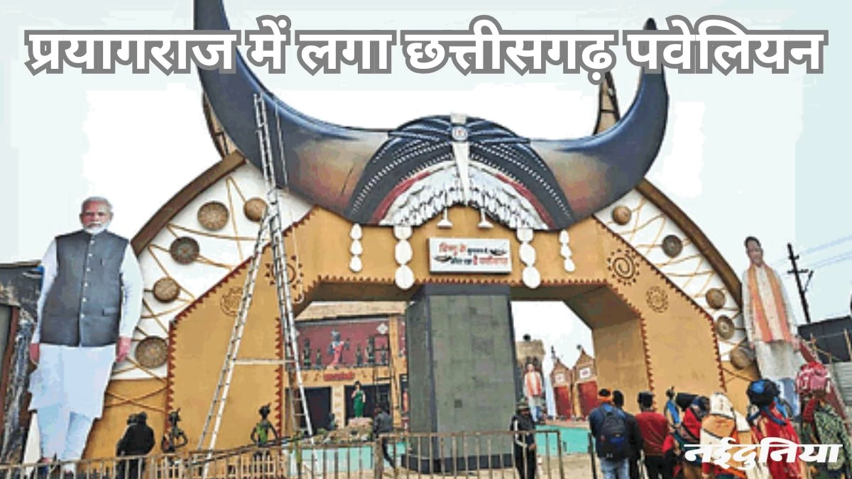 प्रयागराज के सेक्टर-छह महाकुंभ में लक्ष्मीद्वार के पास भारत सरकार के कलाग्राम के सामने छत्तीसगढ़ पैवेलियन स्थित है। इसके प्रवेश द्वार को छत्तीसगढ़ की पहचान गौर मुकुट का रूप दिया गया है, जो दूर से ही श्रद्धालुओं को अपनी तरफ आकर्षित कर रहा है। प्रवेश द्वार पर ही भारत के नियाग्रा कहे जाने वाले बस्तर के चित्रकोट जलप्रपात की तस्वीर लगी है। पैवेलियन के भीतर प्रवेश करते ही छत्तीसगढ़ महतारी की प्रतिमा स्थापित है। प्रवेश द्वार के दाहिनी तरफ राज्य की चार ईष्ट देवियां मां महामाया, मां चंद्रहासिनी, मां दंतेश्वरी और मां बम्लेश्वरी की फोटो और उनकी जानकारी दी गई है।