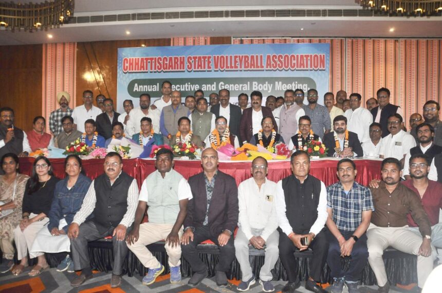 रायपुर। आज छत्तीसगढ़ स्टेट वॉलीबॉल एसोसिएशन की वार्षिक कार्यकारिणी का गठन किया गया। आज के उक्त चुनाव में संजय सिंह अध्यक्ष भारतीय कुस्ती महासंघ के मार्गदर्शन में छत्तीसगढ़ ओलम्पिक संघ के पर्यवेक्षक प्रशांत रघुवंशी तथा खेल एव युवा कल्याण विभाग के पर्यवेक्षक प्रवेश जोशी की उपस्थित में सम्पन्न हुआ। उक्त कार्यकारणी वर्ष 2024-25 से 28-29 तक चार वर्षों हेतु निर्विरोध सर्वसम्मति से चुनी गई है। बैठक ट्रीटोंन होटल में 12:00 बजे से रखा गया था।