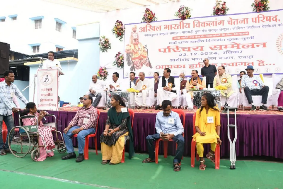 मुख्य अतिथि स्वास्थ्य मंत्री श्याम बिहारी जायसवाल थे। अध्यक्षता विकलांग चेतना परिषद के कार्यकारी अध्यक्ष डॉ. विनय पाठक एवं विशिष्ट अतिथि सतना के पूर्व विधायक शंकरलाल तिवारी ने भारत माता के चित्र पर माल्यार्पण कर परिचय सम्मेलन का शुभारंभ किया। मुख्य अतिथि ने निशक्तजनों को शिक्षित करने व समाज की मुख्यधारा से जोड़ने पर बल दिया। परिषद के अध्यक्ष सत्येंद्र अग्रवाल, महामंत्री संतोष तिवारी, कोषाध्यक्ष पंकज अग्रवाल, सहसंयोजक राघवेंद्र मिश्रा, राष्ट्रीय महामंत्री मदन मोहन अग्रवाल, सीनियर सिटीजन अध्यक्ष प्रकाश सुराधइनवार, मारवाड़ी युवा मंच रायपुर सेंट्रल के अध्यक्ष नीतेश अग्रवाल, सचिव त्रिपत जैन, ब्राह्मण समाज के सचिव सुरेश मिश्रा आदि उपस्थित थे।