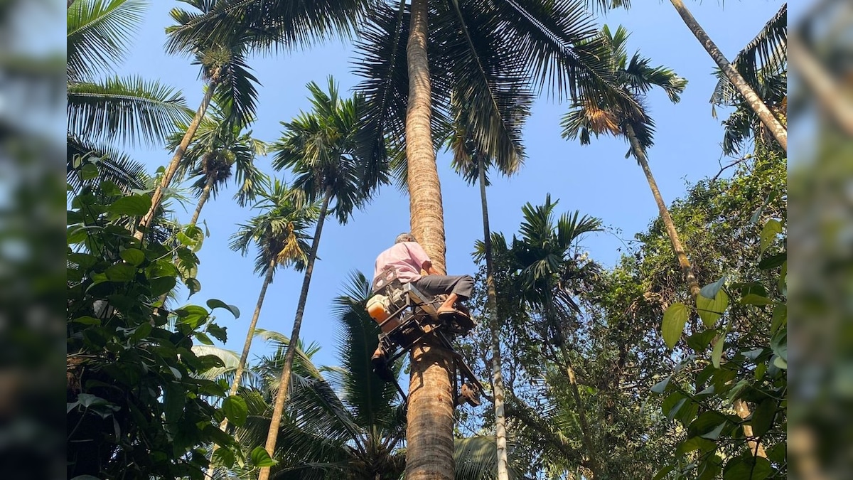 पेड़ पर चढ़कर फसल तोड़ना हमेशा एक चुनौतीपूर्ण काम होता है. इसके लिए किसान या बगीचा चलाने वाले लोग नई-नई तरकीब निकालते हैं. ऐसे ही ट्री बाइक बनाई है कर्नाटक के एक शख्स ने, जिस पर बैठकर वो पेड़ पर चढ़ते हैं.