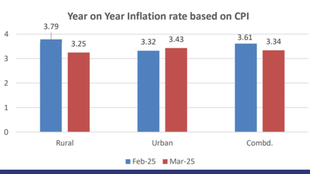 आवास मुद्रास्फीति: शहरी क्षेत्र के लिए, आवास मुद्रास्फीति फरवरी में 2.91 प्रतिशत से थोड़ी बढ़कर मार्च 2025 में 3.03 प्रतिशत हो गई।