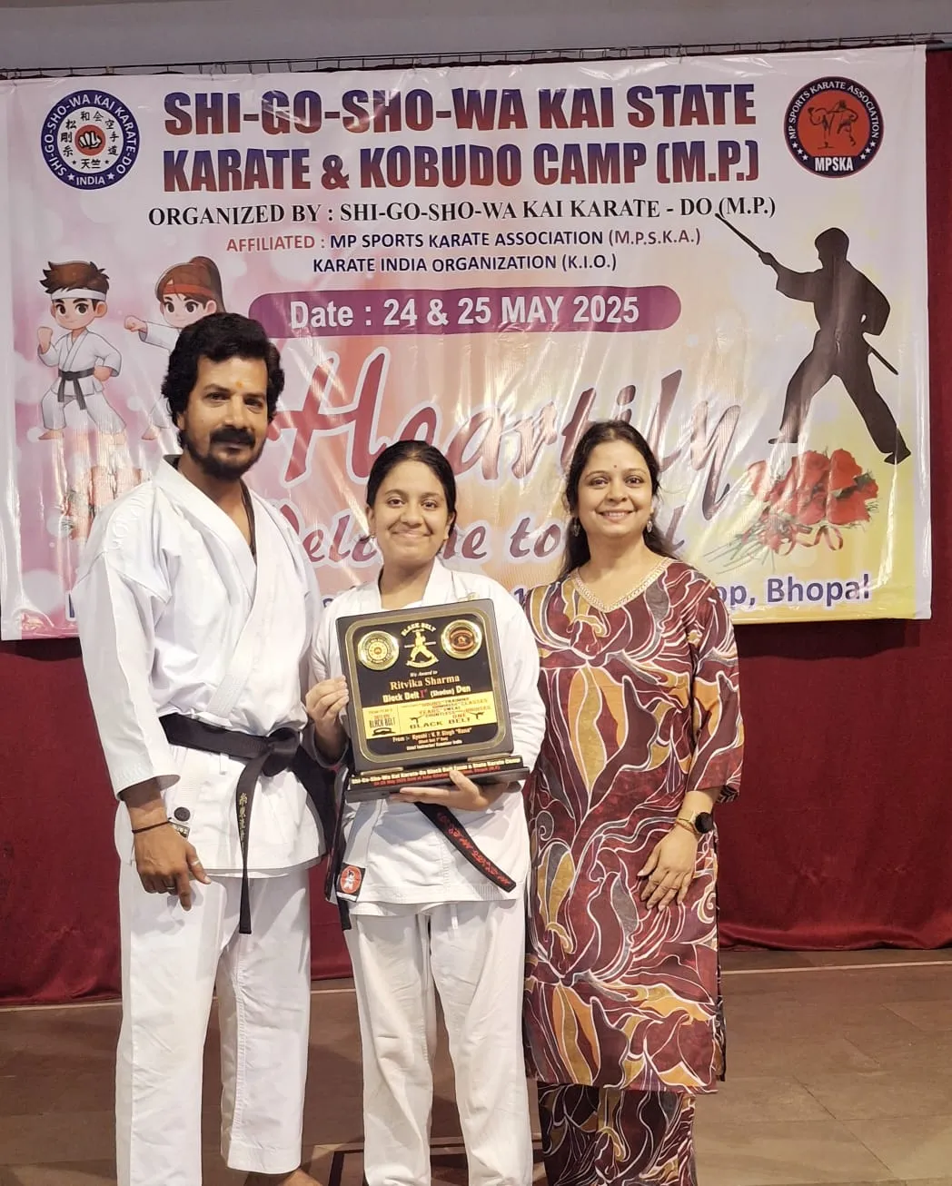 भोपाल की होनहार छात्रा रितविका शर्मा ने कराटे में एक नया मुकाम हासिल किया है। उन्होंने SHI-GO-SHO-WA KAI KARATE-DO INDIA संस्था द्वारा आयोजित “ब्लैक बेल्ट शोदान – 1st डेन” की परीक्षा आशा निकेतन स्कूल में सफलतापूर्वक पास की। परीक्षा में देशभर से प्रतिभागियों ने हिस्सा लिया, लेकिन रितविका ने अपने उत्कृष्ट प्रदर्शन से सबका ध्यान खींचा। वह आगे कराटे में सभी डेन स्तरों को प्राप्त करना चाहती हैं और अंतरराष्ट्रीय स्तर पर देश का नाम रोशन करना चाहती हैं।