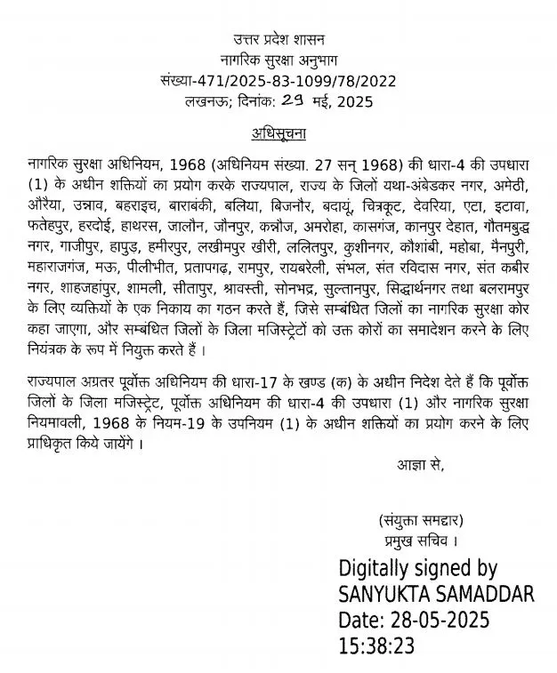 Civil Defense Unit In UP: उत्तर प्रदेश के सभी जिलों में अब सिविल डिफेंस यूनिट होगी। यूपी के 24 जिलों में सिविल डिफेंस पहले से थी। अब प्रदेश के बाकी 50 जिलों में सिविल डिफेंस यूनिट स्थापित करने का नोटिफिकेशन राज्यपाल आनंदीबेन पटेल ने जारी किया है।