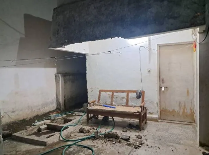 भूकंप आने से गिरा घर का छज्जा