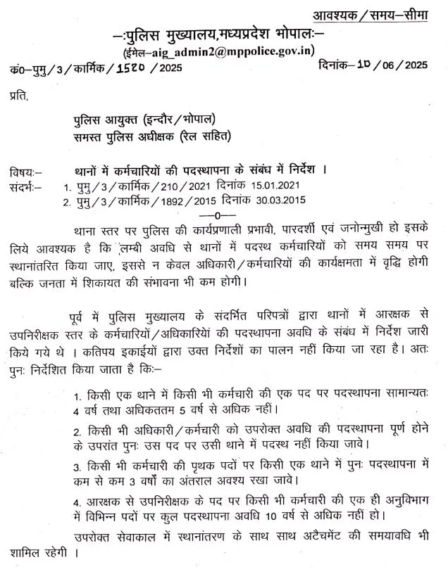 मध्यप्रदेश पुलिस ट्रांसफर गाइडलाइन
