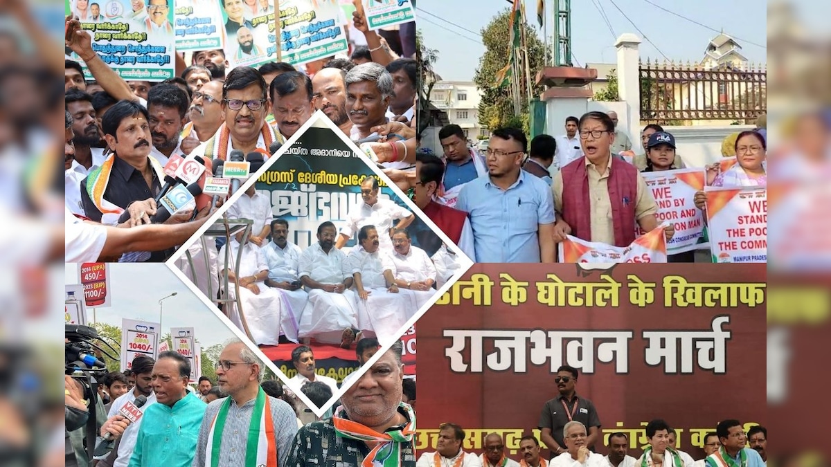 कांग्रेस ने अडानी मामले पर केंद्र सरकार की चुप्पी के खिलाफ सोमवार को देशव्यापी ‘चलो राजभवन’ आंदोलन किया. कांग्रेस अमेरिकी वित्तीय शोध संस्था ‘हिंडनबर्ग रिसर्च’ की रिपोर्ट आने के बाद से अडाणी समूह और प्रधानमंत्री मोदी पर लगातार हमले कर रही है. उल्लेखनीय है कि हिंडनबर्ग रिसर्च ने अडाणी समूह के खिलाफ फर्जी तरीके से लेन-देन और शेयर की कीमतों में हेर-फेर सहित कई आरोप लगाए थे. अडाणी समूह ने इन आरोपों को झूठा करार देते हुए कहा था कि उसने सभी कानूनों और प्रावधानों का पालन किया है. वहीं, कांग्रेस ने अडानी समूह को महाघोटाला करार देते हुए सरकार से चार सवाल किये हैं जो इस प्रकार है- i) अडानी मामले में JPC क्यों नहीं बनाई जा रही है? ii) ED-CBI अभी तक अडानी से दूरी क्यों बनाई हुई है? iii) PM मोदी अडानी का नाम लेने से क्यों घबरा रहे हैं? सदन में चर्चा क्यों नहीं हो रही है? iv) ये कैसे संभव हुआ कि दुनिया के अमीरों की सूचि के 609वें नंबर का व्यक्ति दूसरे पर पहुंच गया? (सभी फोटो @INCIndia से लिए गए हैं)