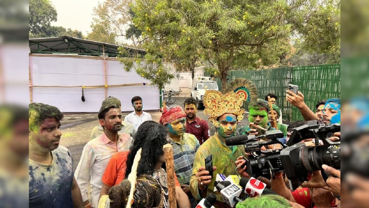 Tej Pratap Yadav’s Holi: बिहार के पूर्व मुख्यमंत्री लालू यादव के बड़े बेटे और राज्य के पर्यावरण मंत्री तेज प्रताप यादव अपने खास ठेठ अंदाज को लेकर अक्सर चर्चा में रहते हैं. माना जाता है कि तेज प्रताप अपने पिता के इस खास अंदाज की विरासत को आगे ले जा रहे हैं. लालू यादव की कुर्ता फाड़ होली लोगों में प्रसिद्ध रही हैं. इस बार होली में तेजप्रताप भी उन्हीं (लालू) के अंदाज में दिखे. पटना में अपने आवास पर मनाए गए होली में वे कार्यकर्ताओं और समर्थकों के बीच जमकर कुर्ता फाड़ होली खेली. उसके बाद, खुद को श्री कृष्ण भगवान का अनन्य भक्त मानने वाले तेजू भैया, भगवान कृष्ण का अवतार ले लिया. वह सिर पर मोर मुकुट पहने नजर आये. इसके साथ ही जब उन्होंने लोगों के बीच बंसी पर तान छेड़ दी तो लोग मंत्र मुग्ध हो गए. उन्होंने वृन्दावन की प्रसिद्ध लठमार होली भी खेली. गोपी की तरह खड़ी एक महिला उन्हें लाठी भी मारते नजर आयी. वहीं, जब उनके पिता का वीडियो कॉल आया तो उन्होंने कार्यकर्ताओं की तरफ मोबाइल स्क्रीन कर दिया जहां लालू यादव ने लोगों को होली की शुभकामना दी. (सभी फोटो @TejYadav14 से लिए गए हैं.)