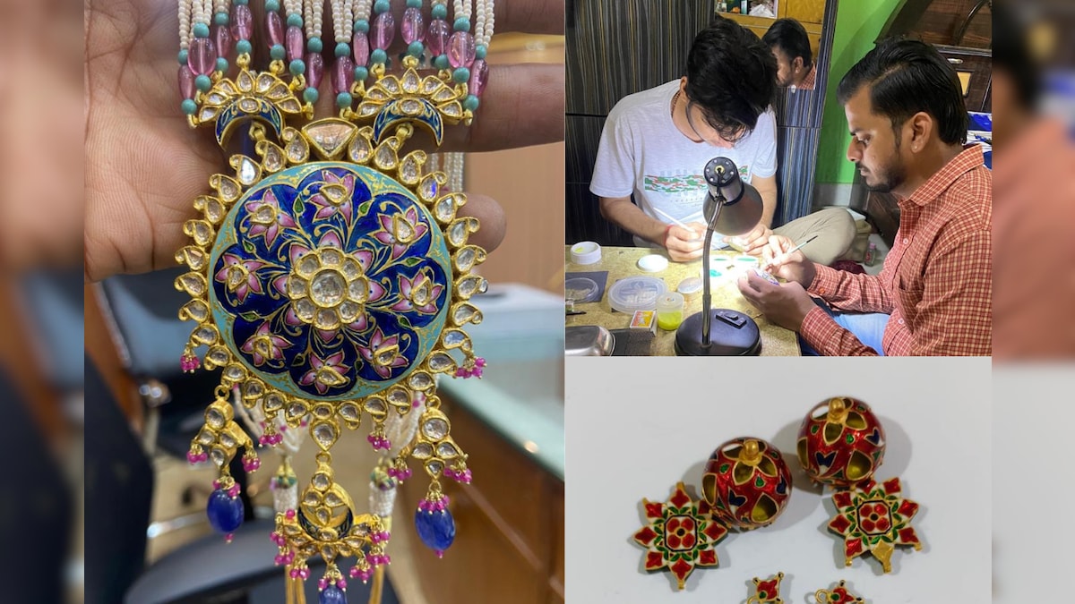 Gulabi Meenakari: नेशनल अवार्डी रमेश कुमार विश्वकर्मा ने बताया कि बड़े बड़े ज्वेलरी शोरूम से सोने पर गुलाबी मीनाकारी के कुंदन ज्वेलरी के ऑर्डर आ रहे हैं. ऑर्डर इतने हैं कि उसकी डिलीवरी के लिए दिन रात कारीगरों को काम करना पड़ रहा है. रिपोर्ट- अभिषेक जायसवाल