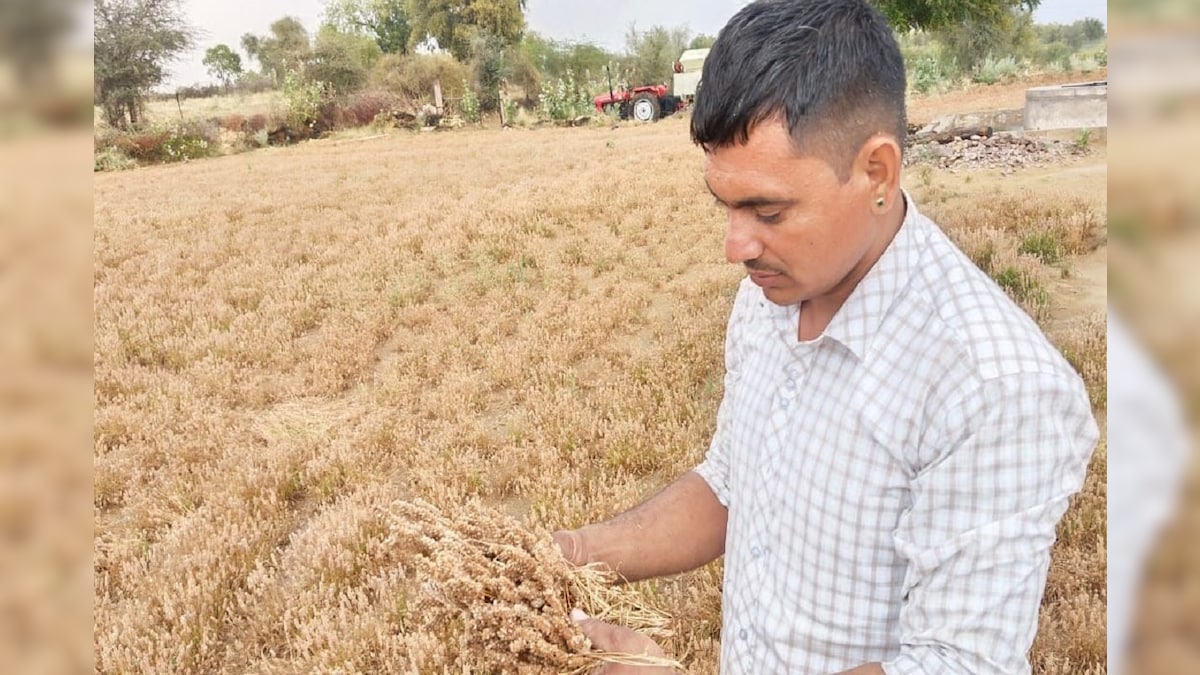 Rajasthan Unseasonal Rain: राजस्थान के कई जिलों में बेमौसम बारिश और ओलावृष्टि ने फसलों को व्यापक पैमाने पर नुकसान पहुंचाया है. खेतों में खड़ी फसलें तबाह हो गईं. बाड़मेर से लेकर करौली तक में तेज हवा के साथ हुई बारिश ने कहर बरपाया. किसानों को अब सरकारी मुआवजे से ही आस है.