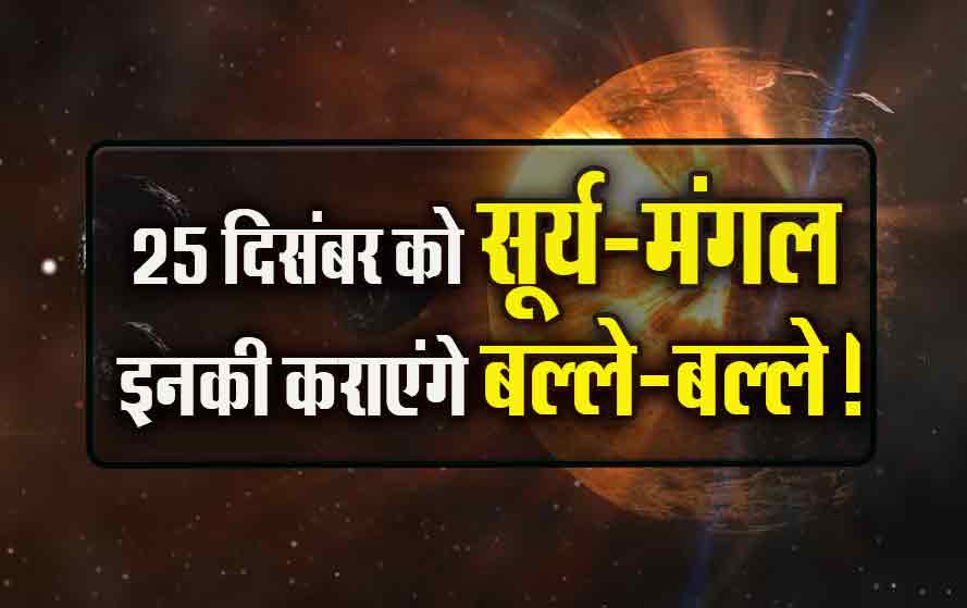 हिन्दू पंचांग के अनुसार दो दिन बाद यानी 25 दिसंबर 2024 बुधवार को सूर्य और मंगल एक दूसरे से 150 डिग्री पर आएंगे। जिनके योग से प्रतियुति योग  का निर्माण होगा।