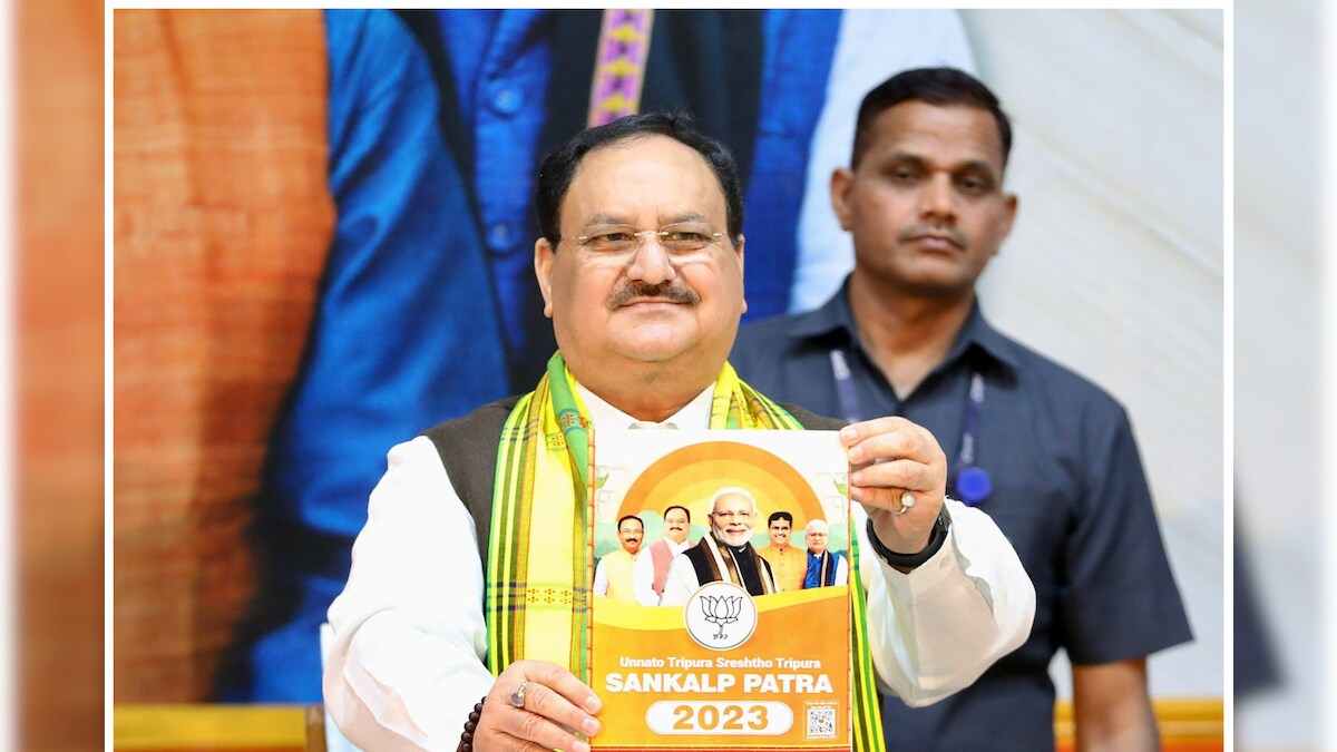 Tripura Assembly Election 2023: घोषणापत्र जारी करने के बाद नड्डा ने यहां एक संवाददाता सम्मेलन में कहा, ‘‘हम त्रिपुरा को ‘डीटीएच’ – विकास (डिवेलपमेंट), परिवर्तन (ट्रांसफॉर्मेशन) और सद्भाव (हार्मनी) के रास्ते पर ले जाएंगे. ’’ घोषणापत्र में कहा गया है कि प्रत्येक बालिका को 50,000 रुपये का ‘बालिका समृद्धि बांड’ दिया जाएगा, जबकि आदिवासी भाषा ‘कोकबोरोक’ को सीबीएसई और आईसीएसई पाठ्यक्रम में विषय के रूप में शामिल किया जाएगा. नड्डा ने कहा, ‘‘हम रबर और बांस पर आधारित उद्योग-विशिष्ट विनिर्माण क्षेत्र स्थापित करेंगे. 6,000 रुपये की प्रधानमंत्री किसान सम्मान निधि को बढ़ाया जाएगा और राज्य सरकार द्वारा 2,000 रुपये और प्रदान किए जाएंगे.’’
