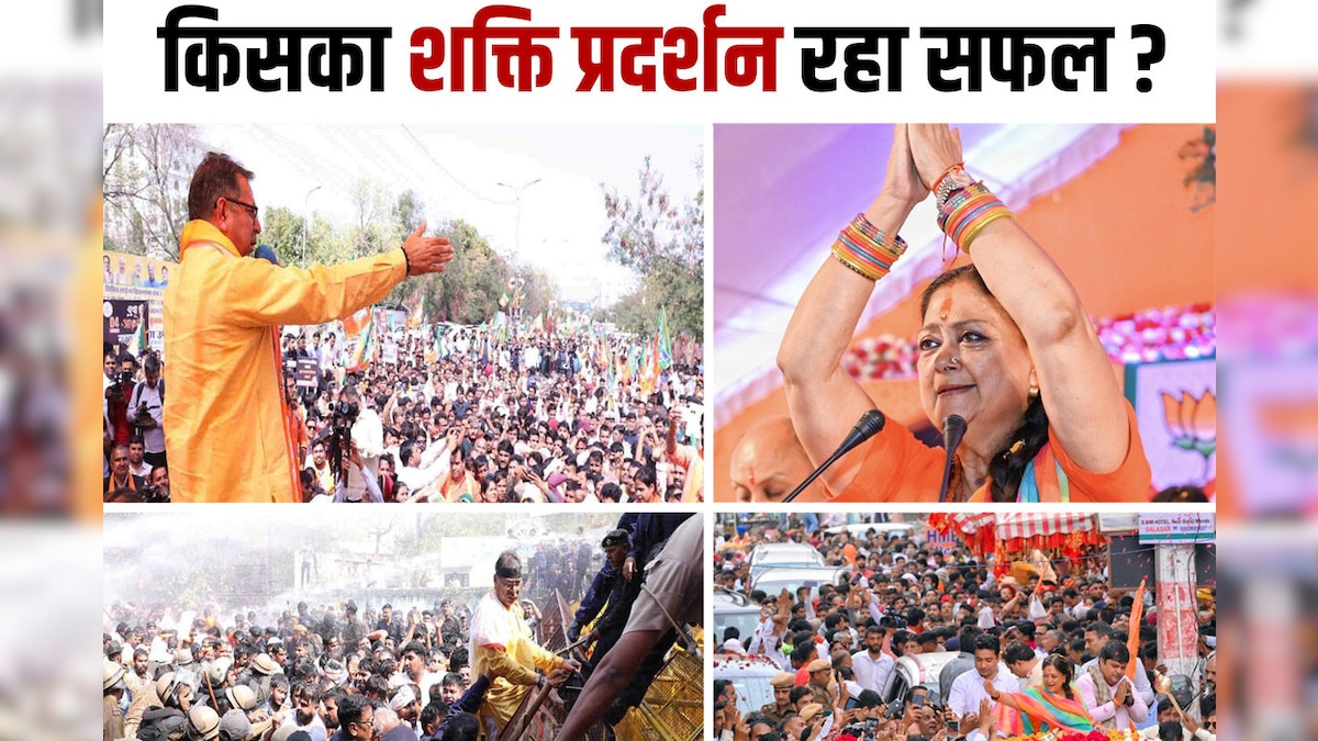 Vasundhara Raje Vs Satish Poonia Political War: विधानसभा चुनाव से पहले राजस्थान में धड़बंदी जोर पकड़ने लग गई है. एक दिन पहले 4 मार्च को राजस्थान में बीजेपी के दोनों धड़ों ने दो अलग-अलग आयोजन कर शक्ति प्रदर्शन किया. एक तरफ वसुंधरा राजे ने सालासार में जन्मदिन के बहाने अपनी ताकत दिखाई तो प्रदेश अध्यक्ष पूनिया कैम्प ने जयपुर में गहलोत सरकार के खिलाफ प्रदर्शन करके अपना दम दिखाया.
